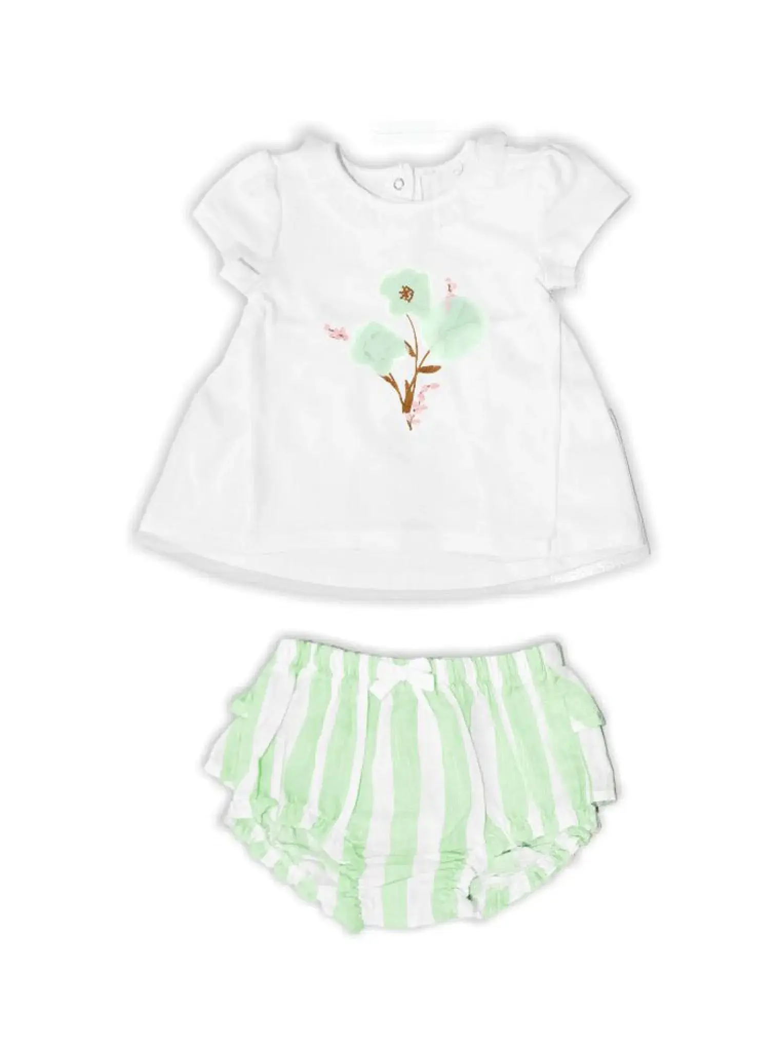 Σετ κοντομάνικη μπλούζα με τύπωμα και ριγέ σορτς για βρεφικό κορίτσι (0 μηνών – 18 μηνών)