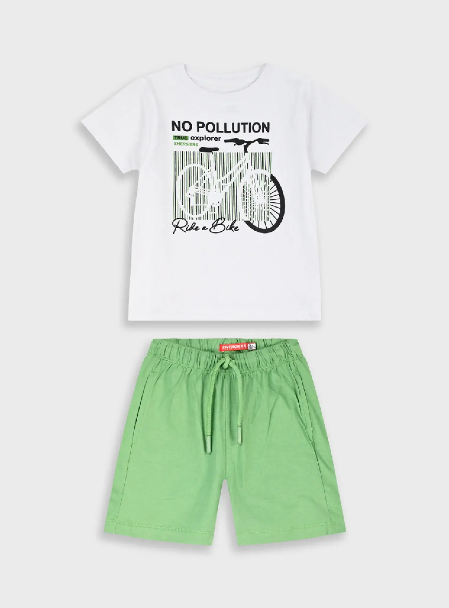 Σετ κοτνομάνικη μπλούζα με τύπωμα και βερμούδα για αγόρι